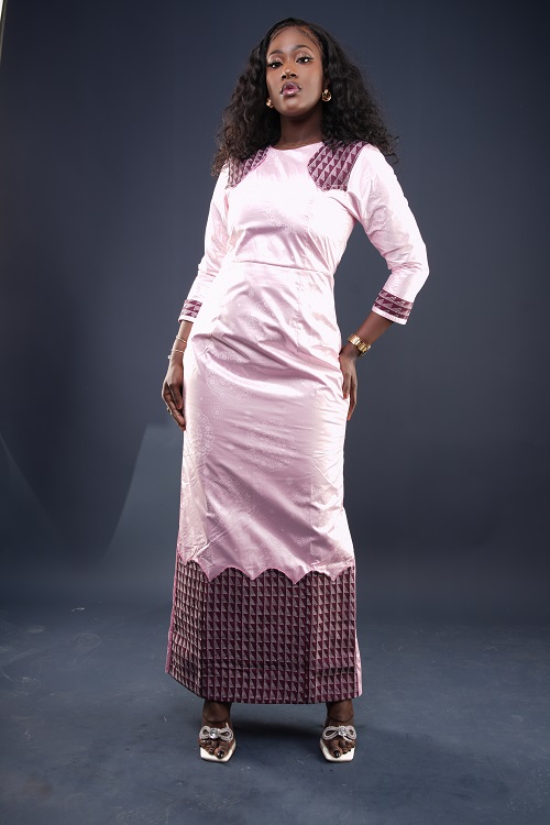 Le modèle de la robe Mama est une robe faite en getzner avec une touche de pagne tissé.